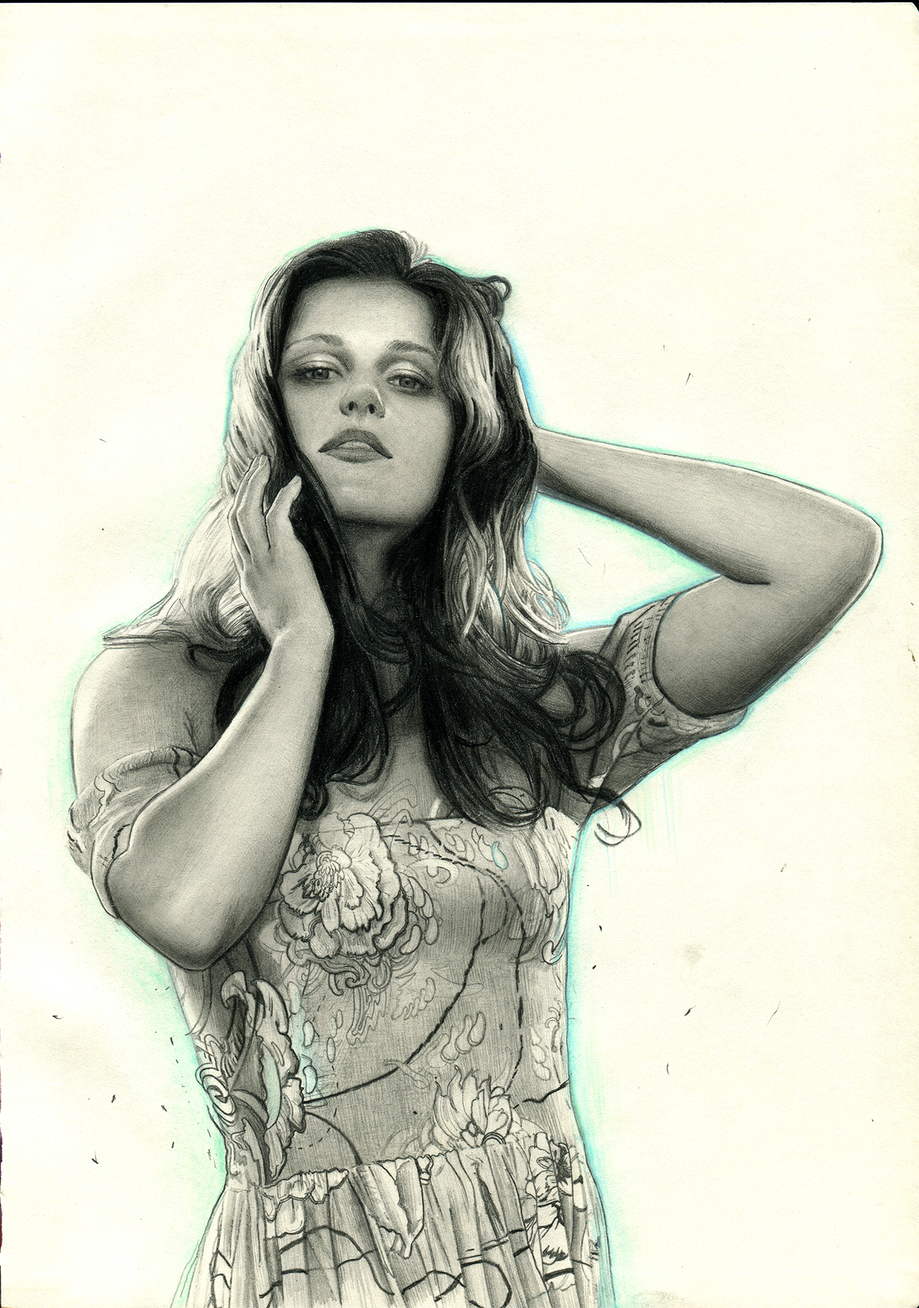 This drawing helped me explore ideas for the Moleskine Project Exhibition as I really liked this pose. It was drawn on Moleskine Sketchbook paper measuring 8.25" x 11.75" (A4 size) using pencils and colored pencils.