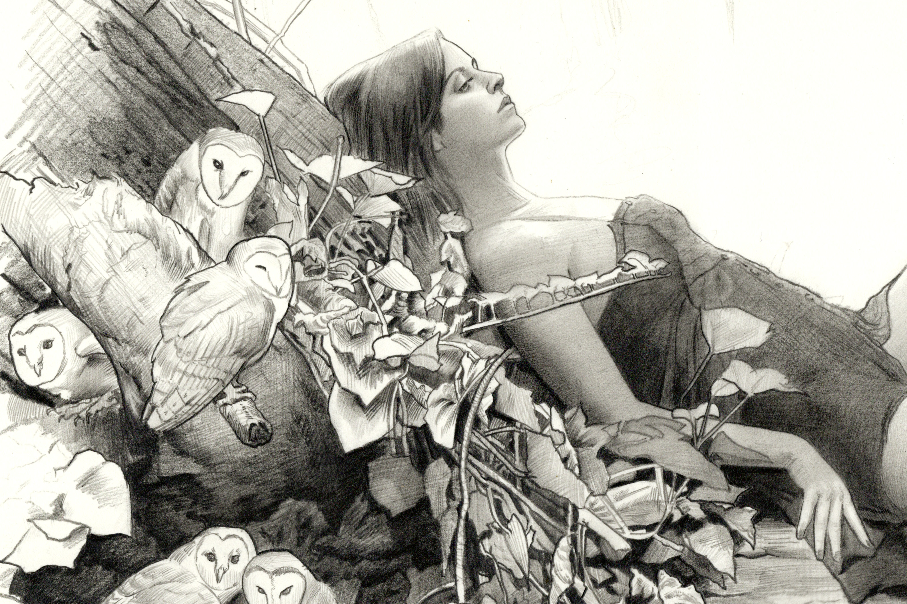 Original artwork using pencil on heavyweight Fabriano Artistico watercolor paper. Measures 20" x 13". This artwork was created as a preliminary drawing to help prepare for a larger oil painting.