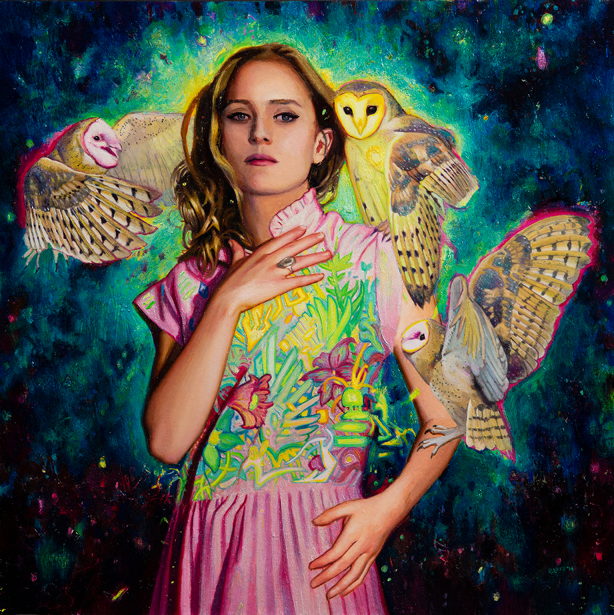 This original artwork was made using oil paints, iridescent media and gold iridescent paint on cradled panel. The painting measures 12" x 12".