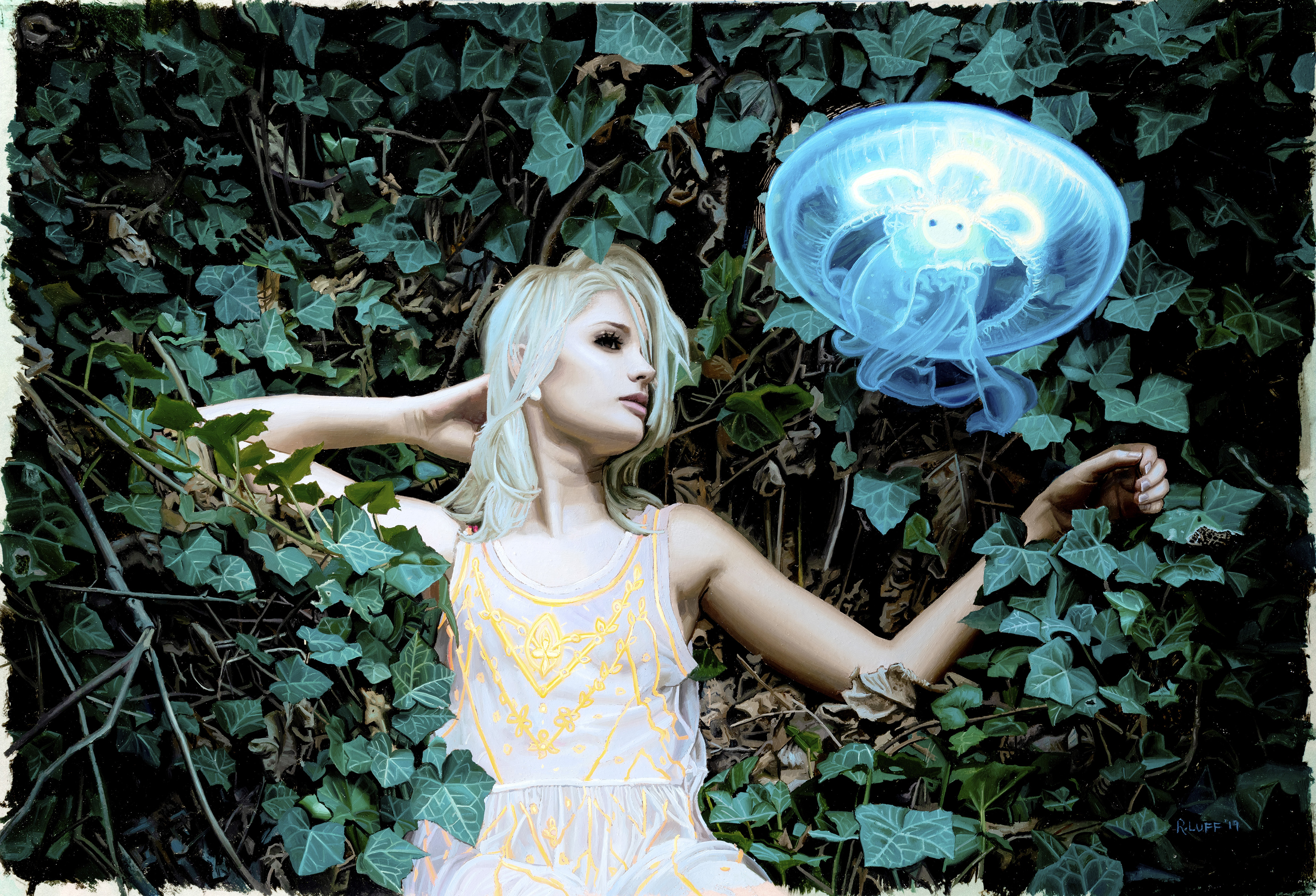 Oils on paper mounted to cradled panel, artwork size measures 19" × 13". From my "Afterglow" solo exhibition at Thinkspace Gallery.