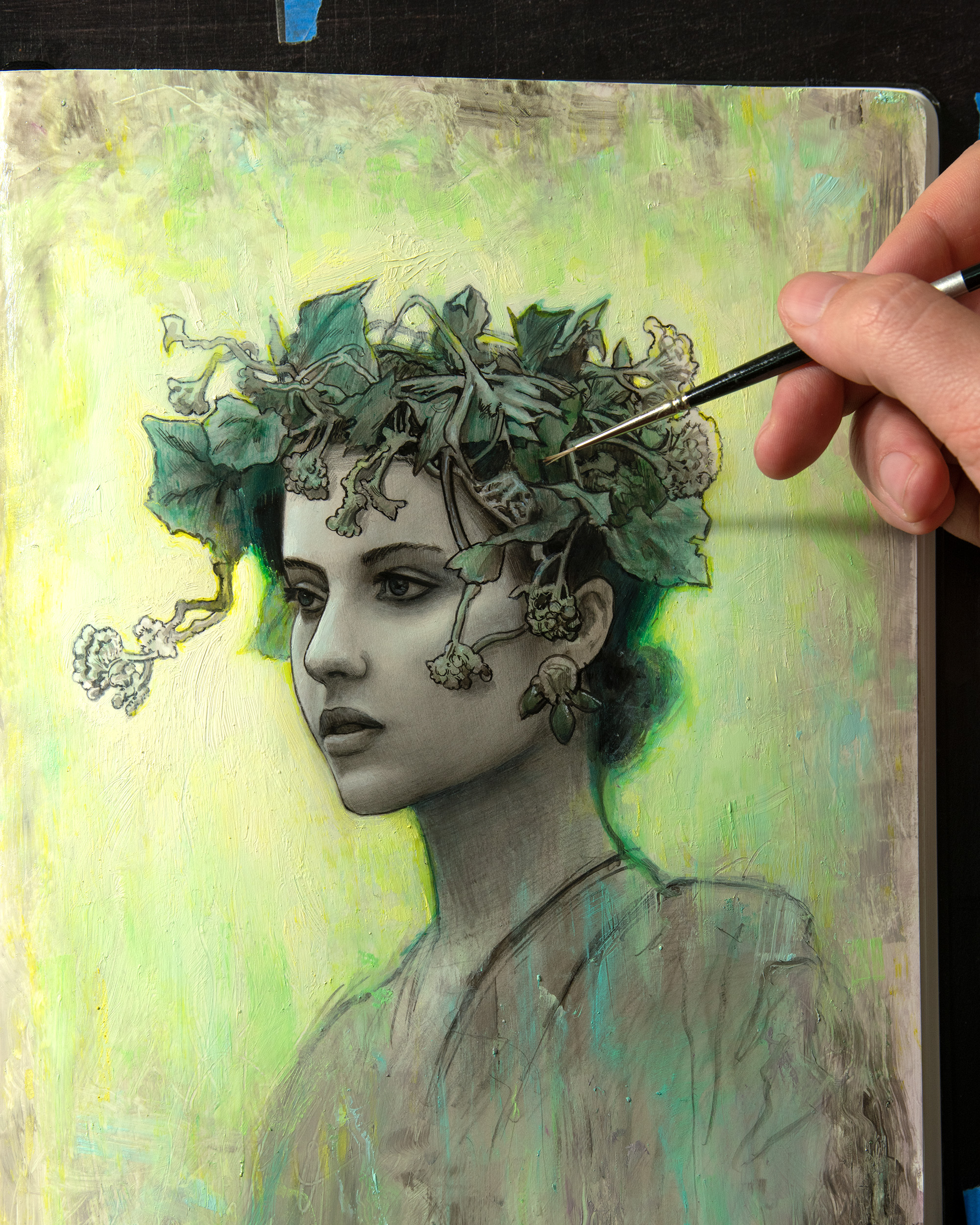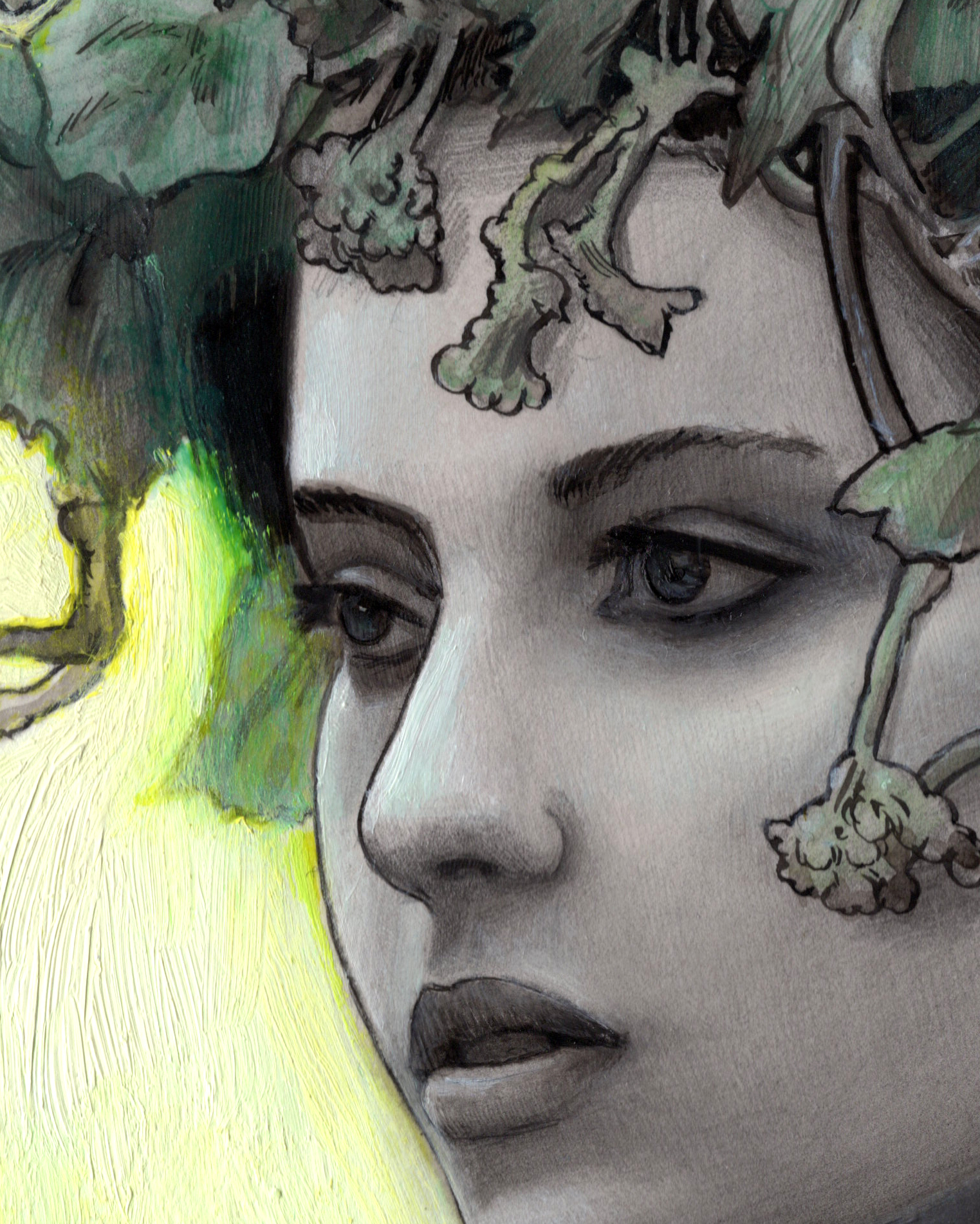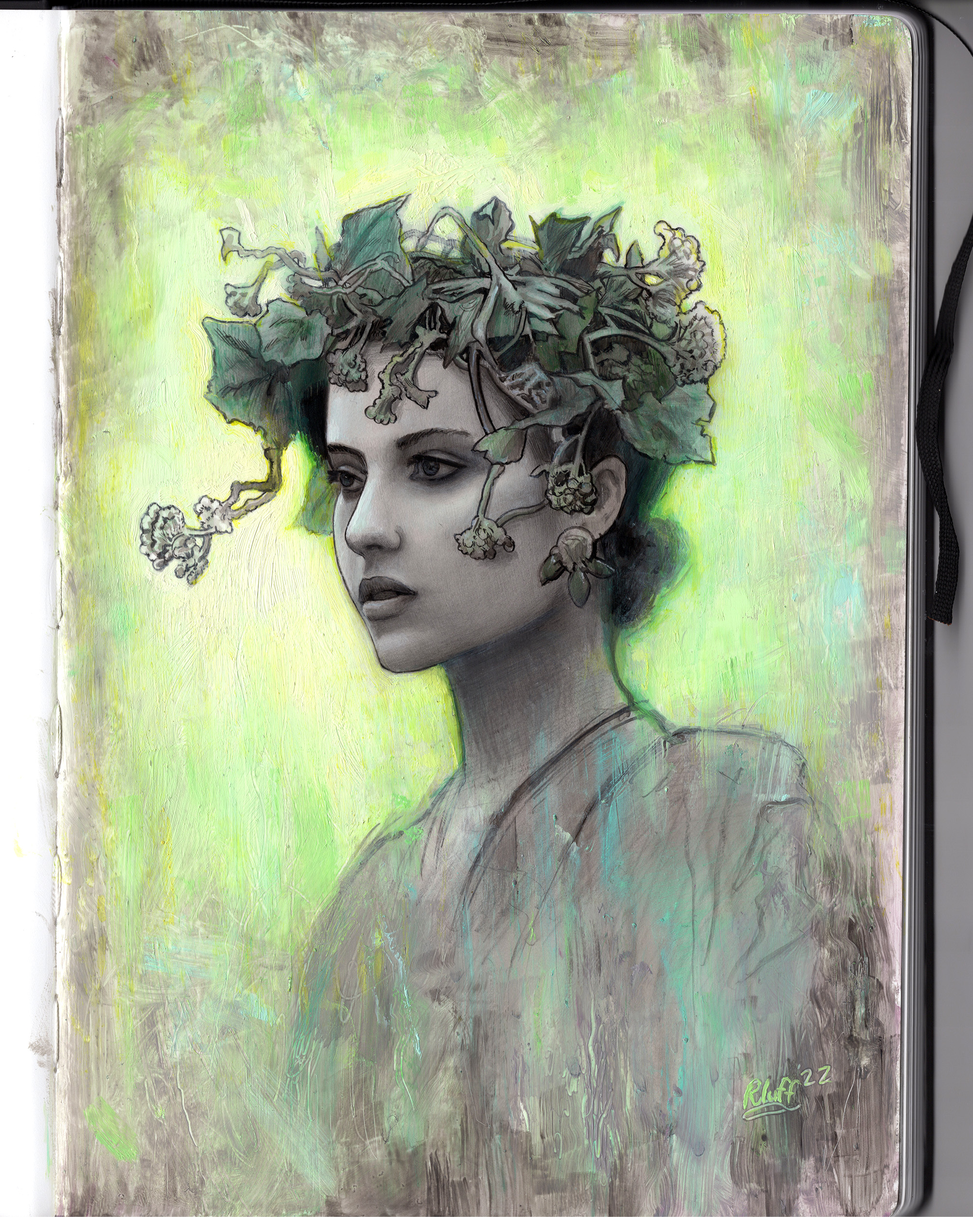 Mixed media drawing from April 2022 on archival Stone paper by Karst. Media consists of pencil, ink, pastel and oils on A4 size paper.