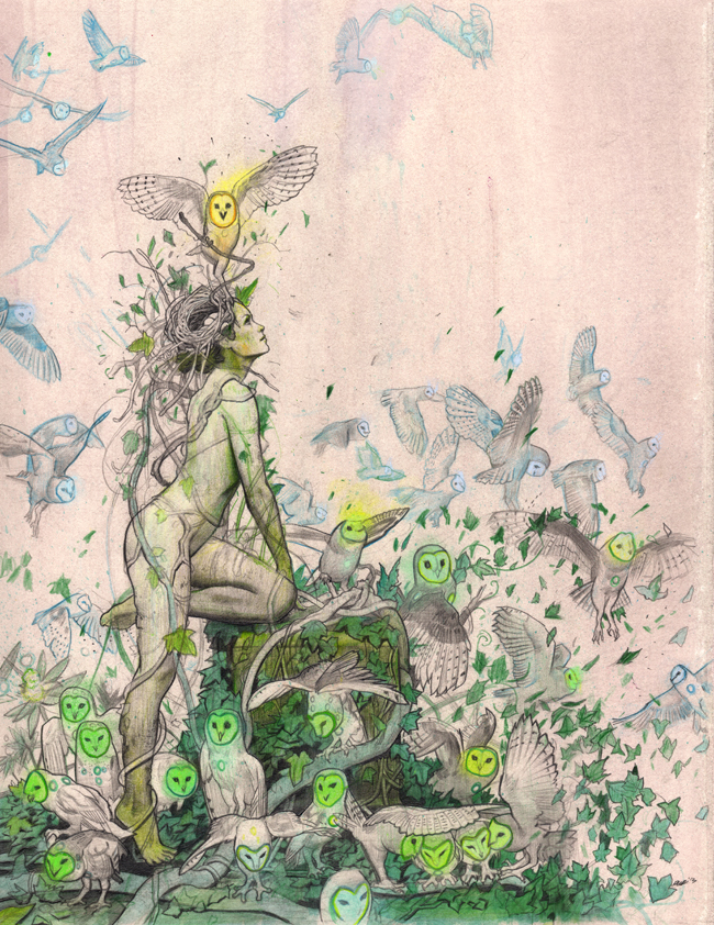 This is an original artwork that was created as a preliminary to the final painting titled "Wanderlust." The final painting was included in my solo show "Aurora" at Thinkspace Gallery.