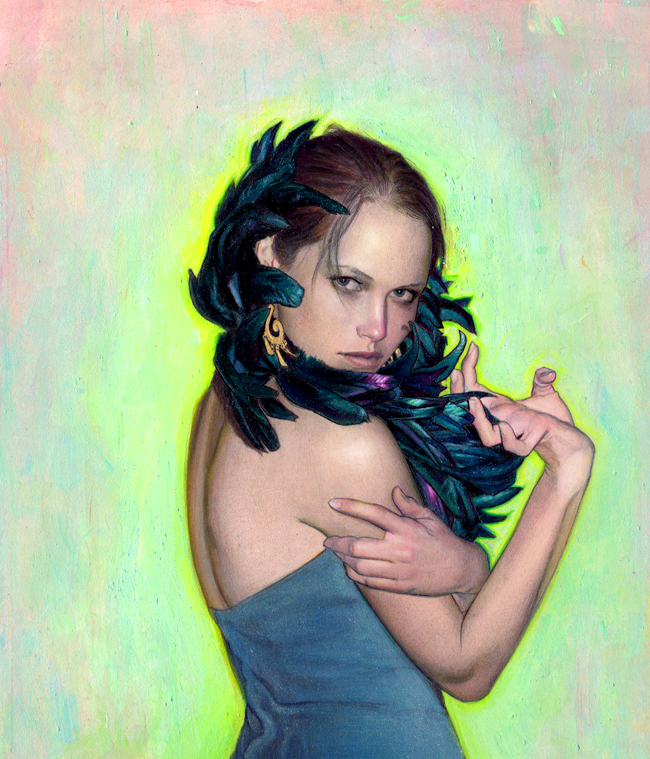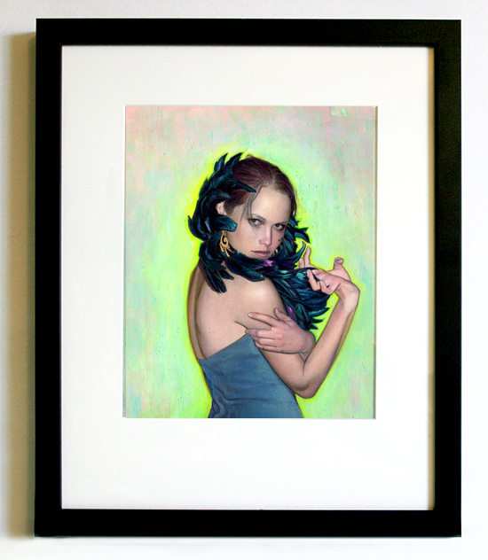 This is an original, framed artwork made with pencil, pastel, coloured pencil, ink, acrylic, iridescent medium heavyweight Fabriano watercolour paper (Hot Press Smooth 300 lb or 640 gsm). The size is 8.3" x 9.7" or 21.1 x 24.6 cm